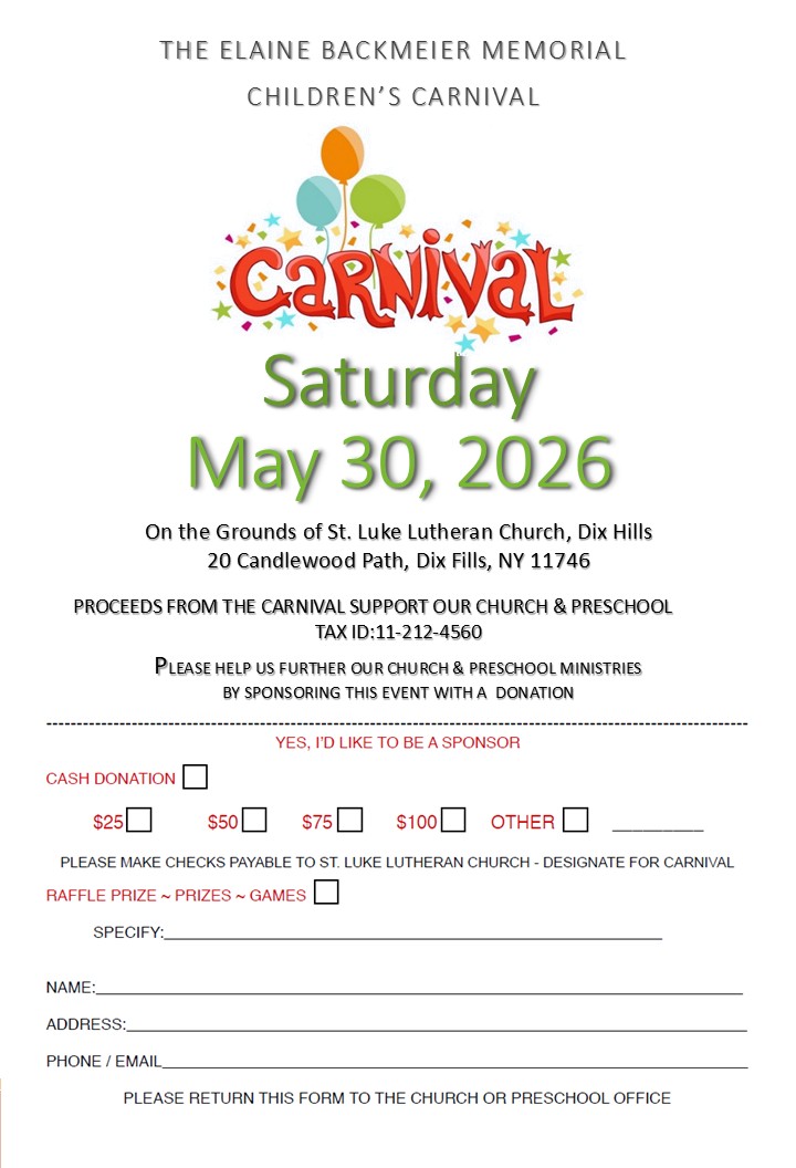 The St. Luke Children’s Carnival is dedicated in memory of Elaine Backmeier,