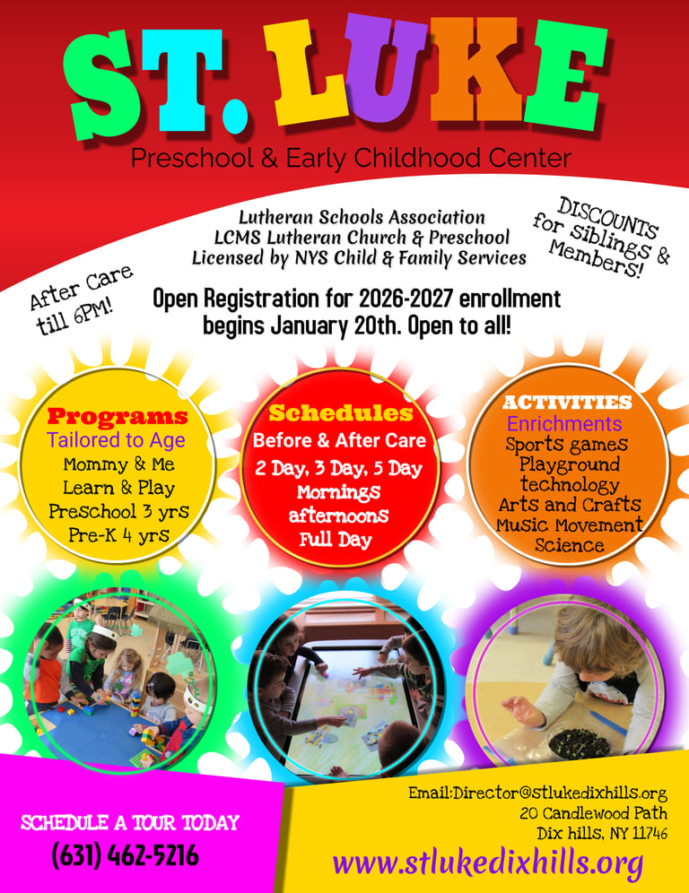 Looking for Preschool information? Click here or call the Preschool Office (631) 462-5216. Book a tour today!
