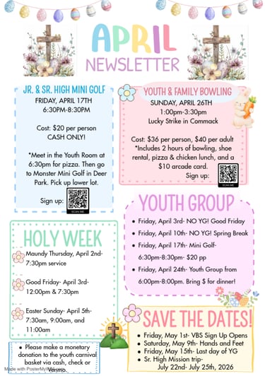 Our Senior High Youth Ministry (UNITED) is for children in 9th, 10th, 11th and 12th grade. We meet on Fridays at 6:00pm in the Youth Room (except on holiday weekends). We also gather for numerous fellowship events (holiday parties, lock-ins, etc.) service events (Yard work, feeding the homeless, fundraisers, etc.) mission trips, youth gatherings and so much more!
