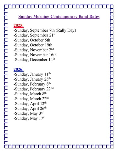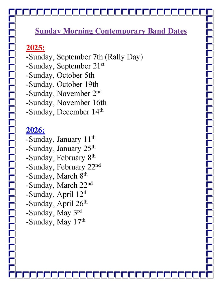 The Contemporary Band leads us in worship with popular Contemporary songs two times a month on Sundays at 10:45am.